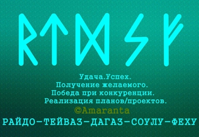 Дагаз+Соулу-наделяют удачей, уверенностью, смелостью, блистательностью, привносят радостные перемены