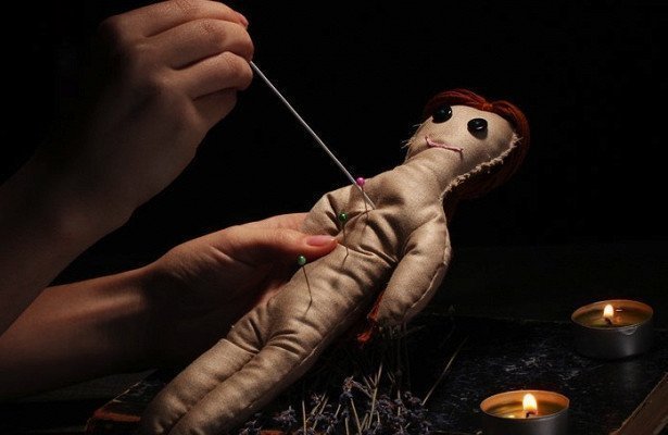 Первую иглу вонзить в голову куклы и сказать: